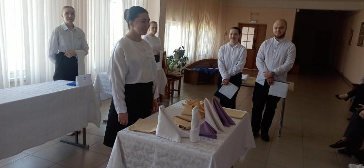 Настоящей проверкой профессиональной подготовки, скорости реакции, творческого подхода и умения работать в условиях, максимально приближенных к реальной ресторанной практике стал конкурс профессионального мастерства «Ресторанный бой» среди учащихся 90 группы по квалификации «Официант». Участники продемонстрировали не только технические навыки, но и культуру обслуживания, артистизм, умение общаться с гостем и находить решения в нестандартных ситуациях. Конкурс включал несколько этапов, каждый из которых раскрывал важные компетенции будущего специалиста индустрии гостеприимства.