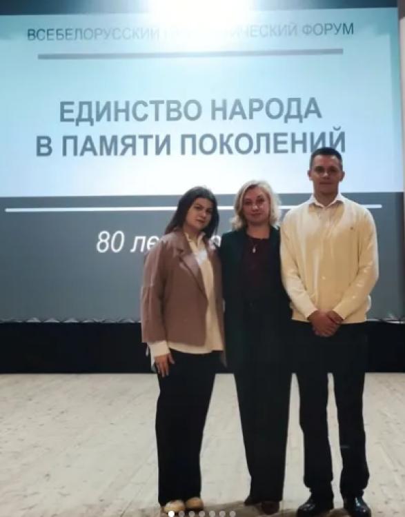 Учащиеся и педагоги колледжа приняли участие во Всебелорусском патриотическом марафоне "Единство народа в памяти поколений", приуроченном ко Дню народного единства с участием Министра образования Республики Беларусь Иванца А.И. На форуме представлен опыт работы по сохранению и увековечению памяти о подвиге белорусского народа в годы Великой Отечественной войны в форме выставки-презентации и стендовых докладов. Главная задача молодежи - сохранить и передать память и историческую правду, гордиться подвигом своих прадедов, быть достойными гражданами и настоящими патриотами своей страны. В колледже проделана большая исследовательская работа, создан не один проект на тему Великой Отечественной войны. Мы помним, мы гордимся - и в этом мы ЕДИНЫ!