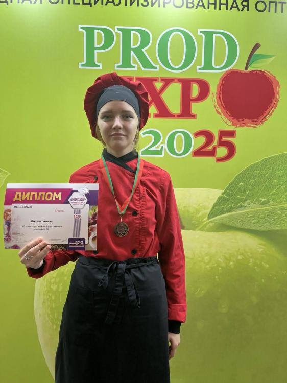 Наши талантливые учащиеся блестяще проявили себя на двух международных конкурсах — Международном хлебном салоне и Международном кулинарном кубке, подтвердив высокий уровень профессиональной подготовки и творческого подхода. Эти результаты показывают, что наши учащиеся способны достойно представлять колледж на международной арене, а их талант и упорство — залог новых свершений. Поздравляем учащуюся группы 90 Жуковскую Екатерину, завоевавшую серебро в Международном кулинарном кубке в номинации "Блюда из рыбы", учащуюся группы 90 Писарик Дарью, завоевавшую бронзу в Международном кулинарном кубке в номинации "Блюда из мяса", учащуюся группы 90 Болтач Ульяну, завоевавшую бронзу в Международном хлебном салоне в номинации "Пряники 2-3D".