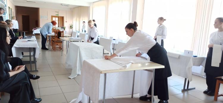 Настоящей проверкой профессиональной подготовки, скорости реакции, творческого подхода и умения работать в условиях, максимально приближенных к реальной ресторанной практике стал конкурс профессионального мастерства «Ресторанный бой» среди учащихся 90 группы по квалификации «Официант». Участники продемонстрировали не только технические навыки, но и культуру обслуживания, артистизм, умение общаться с гостем и находить решения в нестандартных ситуациях. Конкурс включал несколько этапов, каждый из которых раскрывал важные компетенции будущего специалиста индустрии гостеприимства.