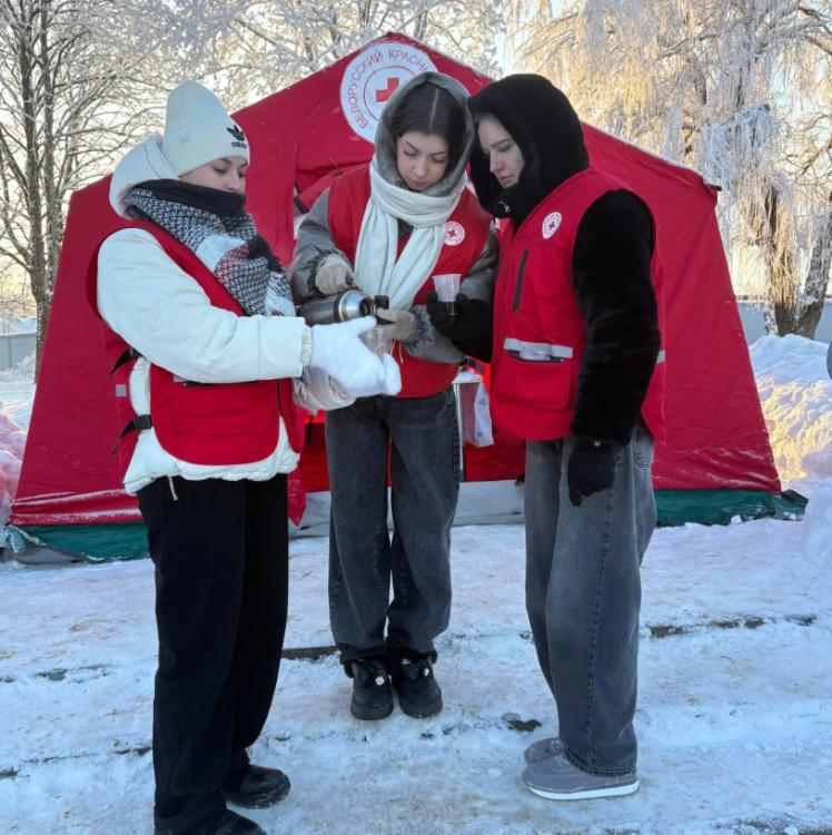 Морозы и холода не помеха, если чувствуешь дружескую поддержку и помощь со стороны людей, своей душевной чуткостью и заботой способных согреть каждого. Такую заботу и практическую помощь в эти студеные зимние дни жителям Новогрудка оказывает районная организациями Белорусского общества Красный крест.В акции приняли участие и волонтеры нашего колледжа.Ребята в рамках свободного времени, предлагали горожанам согревающий чай,или согреться в пункте обогрева.Акция проводится чтобы всем, кому сейчас холодно на улице, просто прохожим, которым хочется согреться, дать надежду на тепло.